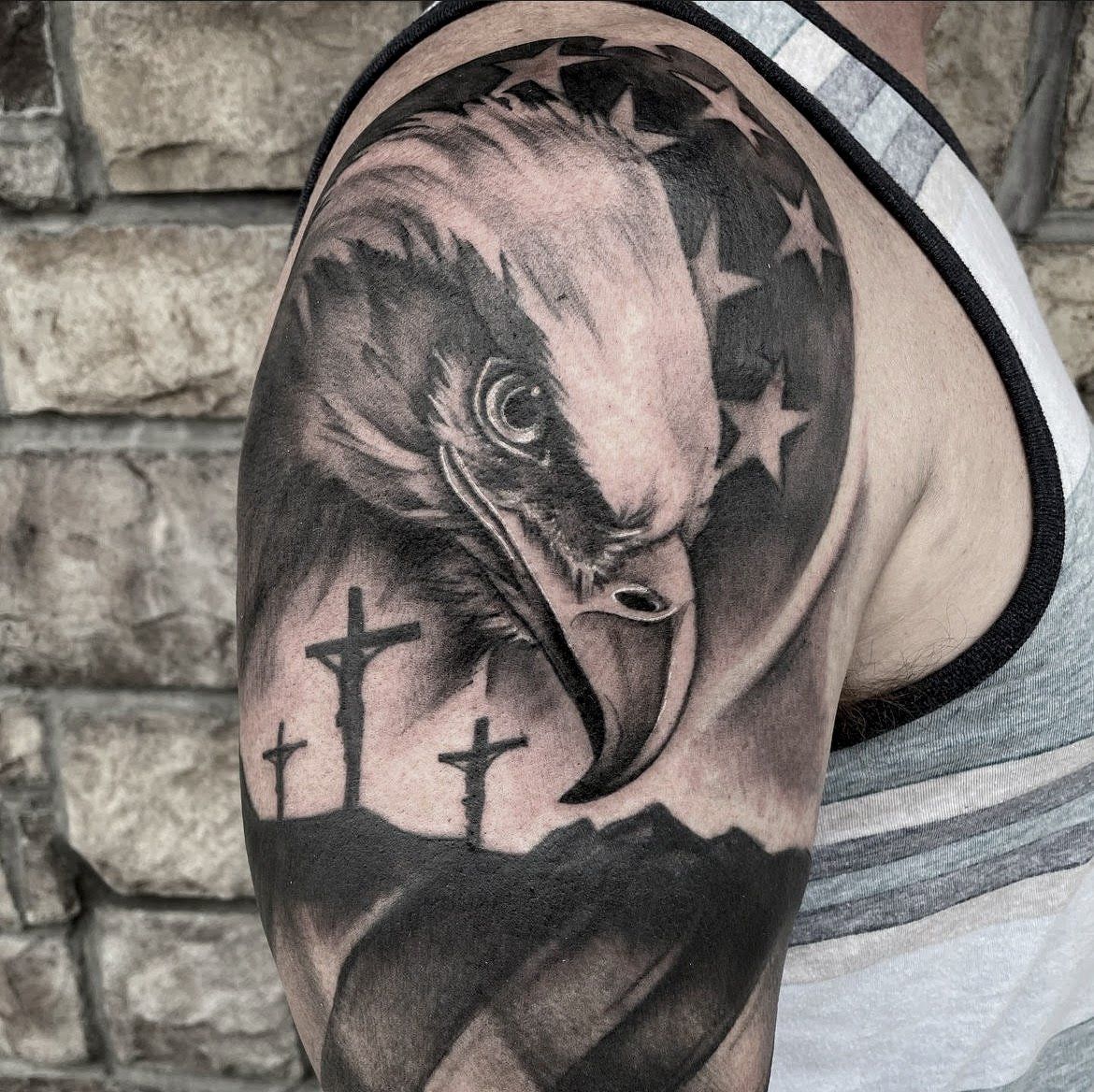 Brielle is torn between black/grey and color tattooing and enjoys doing both just the same. She specializes in illustrative pet portraiture but also loves tattooing other subjects that include a variety of portraiture, wildlife, American patriotism & faith. Make sure to follow @briezy_tattoo on Instagram for updates and her most current work.